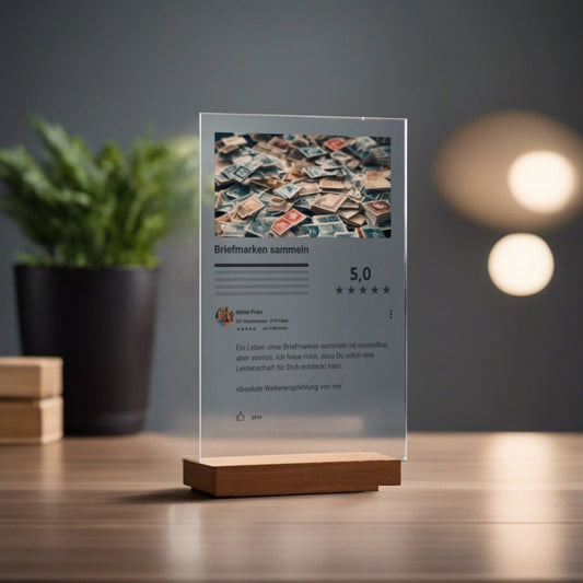 Internet Bewertung Acrylglas Hobby Briefmarken personalisierbar mit Foto & Text