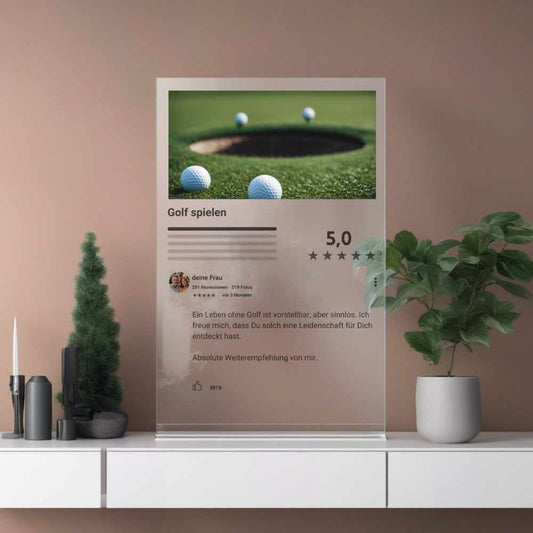 Internet Bewertung Acrylglas Hobby Golf personalisierbar mit Foto & Text