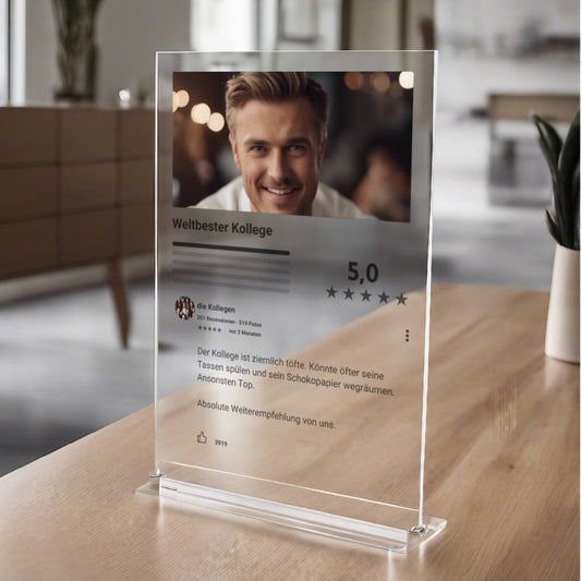 Internet Bewertung Acrylglas für Deinen Kollegen personalisierbar mit Foto & Text
