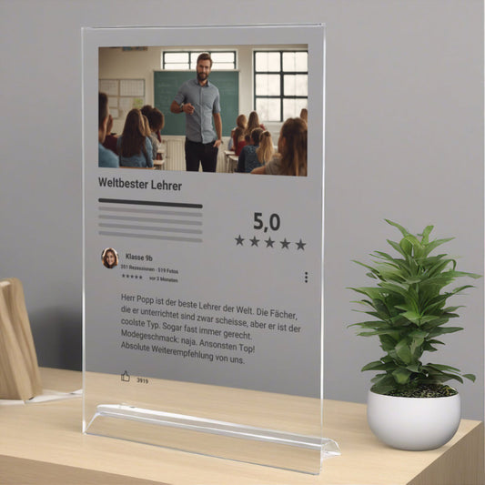 Internet Bewertung Acrylglas für Deine Lehrer personalisierbar mit Foto & Text
