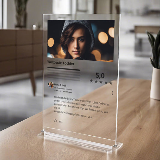 Internet Bewertung Acrylglas für Sohn / Tochter personalisierbar mit Foto & Text