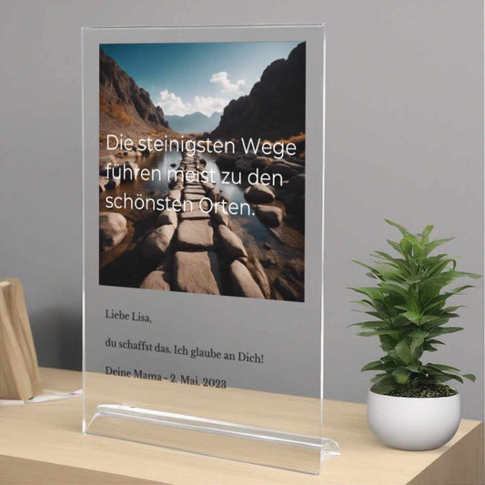 Bald verfügbarZitat "steiniger Weg" personalisierbar aus Acrylglas