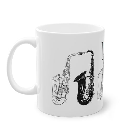 Weisse Tasse "I love Saxophone"