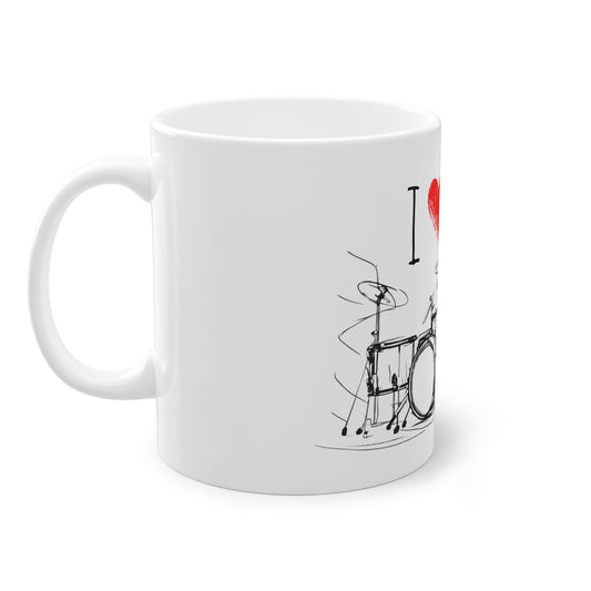 Weisse Tasse "I love Drums"
