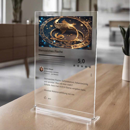 Internet Bewertung Acrylglas Sternzeichen Fische personalisierbar mit Foto & Text