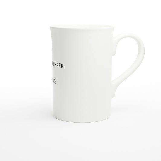 Weiße schmale Porzellantasse Deutschlehrer
